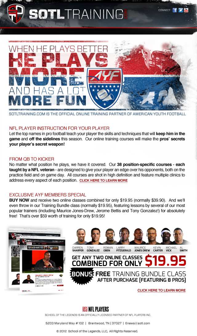 An email layout for a sports start-up I worked at called School of the Legends